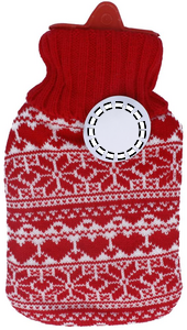 Hot water bottle with jersey in Nordic design. Used to provide warmth, typically whilst in bed, but also for the application of heat to a specific part of the body. 310 ml capacity.