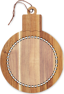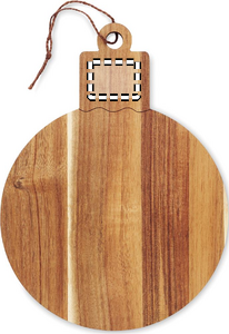 Acacia wood serving board with in Christmas bauble shape with PU cord. Wood is a natural product, there may be slight variations in colour and size per item, which can affect the final decoration outcome. FSC®-certified | FSC 100%, W16.3, FSC-C213206
