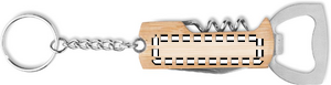 3 in 1 tool pocket with bamboo case and key ring. It includes a bottle opener, wine corkscrew opener and pocket knife.