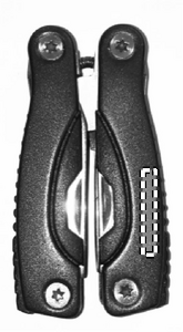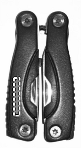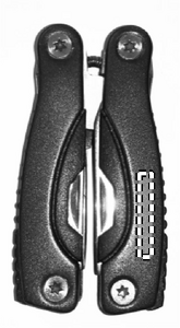 Foldable multi-tool in stainless steel with stainless steel pliers. 9 tool functions. 600D polyester pouch included.