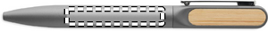 Twist ballpen with recycled aluminium barrel, recycled ABS twist part, and metal clip with bamboo detail. Blue ink.