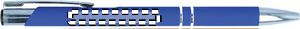 Push button ball pen in rubberized finish. Blue ink.
