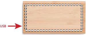 Wireless charging and power bank with 6000 mAh capacity in Bamboo casing. Includes Type C connector. Power bank output DC9V/1.66A (15W). Wireless output: DC9V/1.66A (5W). Bamboo is a natural product, there may be slight variations in colour and size per it