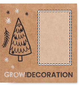 Wooden tree shaped decoration hanger with jute cord including spruce seeds. Presented in kraft envelope. Made in EU.