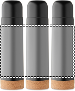 Double wall vacuum insulated flask in recycled stainless steel (90% recycled stainless and 10% stainless steel) with cork detail base. Leak- free. Capacity: 500 ml.