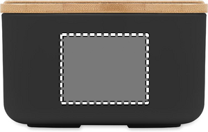 100% PLA corn lunch box with bamboo lid and RPET elastic band closure. Capacity : 1000 ml.