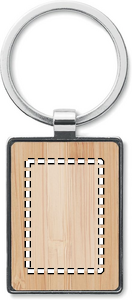 Rectangular shaped zinc alloy key ring with bamboo front. Bamboo is a natural product, there may be slight variations in colour and size per item, which can affect the final decoration outcome.