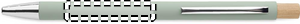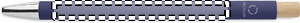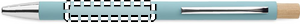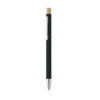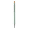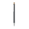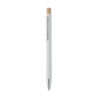 Recycled aluminium with bamboo push button. Silver tip and clip. Blue ink.