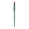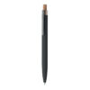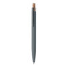 Push ball pen in recycled aluminium with cork detail button and metal clip. Blue ink.