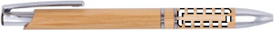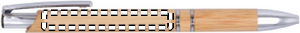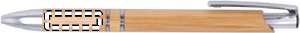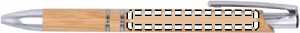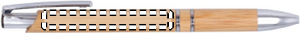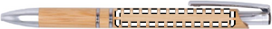 Push button pen in aluminium fittings with bamboo barrel. Blue ink. Bamboo is a natural product, there may be slight variations in colour and size per item, which can affect the final decoration outcome.