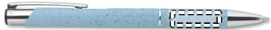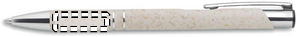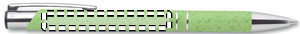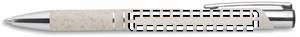 Push button ball pen in 50% wheat straw and 50% ABS material with silver fittings. Blue ink.
