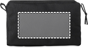 This cosmetic bag with double zipper is perfect to take along when traveling. You can store all your cosmetics, shampoo bottles and make-up in the main compartment. The smaller front pocket can be filled with smaller items. The bag is made from 600D RPET. If the hotel or bathroom does not have a place to store it, you can hang it with the attached loop.