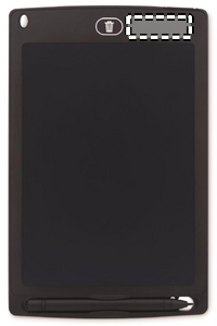 LCD writing tablet 8.5 inch including writing stylus. Touch the button to erase your drawing. The thin shape makes it an ideal item to take everywhere with you. 1 CR2020 battery included.