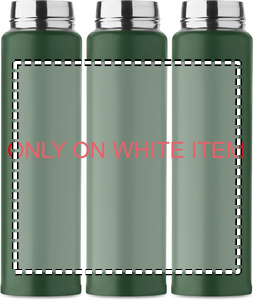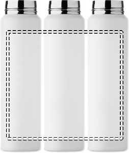 Double wall drinking bottle in recycled stainless steel (90% recycled stainless steel and 10% stainless steel) with security lock on the lid and press-to-open option. Leak free. Capacity: 300ml.