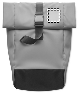 15 inch laptop rolltop backpack in high reflective 190T polyester. Additional internal side with hook and loop closure. Padded back, straps and bottom. Front sided zippered pocket. Bottom part in 600D recycled polyester.