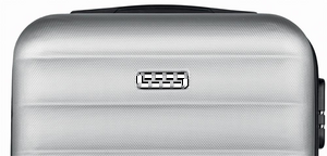 20 inch hard-shell trolley in ABS. 1 main compartment and inner compartment. Includes a security lock. Rides on 4 wheels.