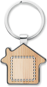 House shaped zinc alloy key ring with bamboo front. Bamboo is a natural product, there may be slight variations in colour and size per item, which can affect the final decoration outcome.