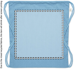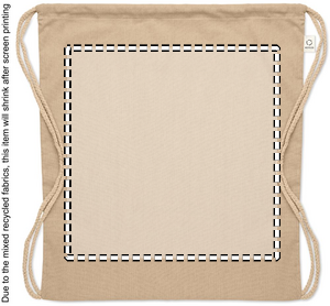 Drawstring bag in recycled pre-consumer cotton (70 %) and RPET (30%) 140 gr/m². This item can shrink after printing.