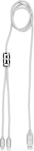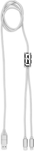 Charging cable in aluminium with input: 2-in-1 type-C & type-A and micro-B (2 in 1 pin), Type C and micro B output. Cable length: 120cm.