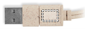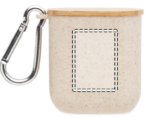 Cable set in wheat straw/ABS case with bamboo top and carabiner. Lid serves as phone stand (in horizontal position). Cable input 2in1 USB-C/A, output Type-C and 2 in 1 pin.