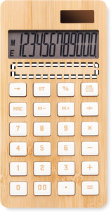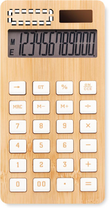 12 digit calculator with dual power in ABS with a bamboo wooden case. This calculator is not only an office essential, it will also enhance your desk space and look extra stylish with the natural bamboo finish. Since it is dual powered by a small solar panel and battery, you always have a working tool at hand. 1 cell battery (LR1131) included.