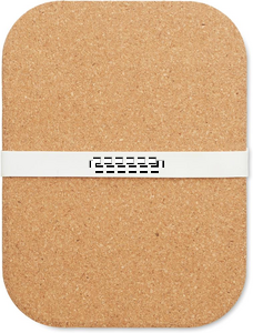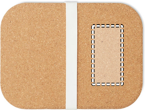 High borosilicate glass lunch box with cork lid and silicone band. Capacity: 830 ml.