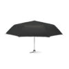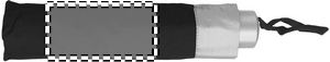 21 inch manual open umbrella in 190T polyester with zincify plating metal shaft and tips. Black plating metal ribs. Panels in colour with silver coating on back. Plastic handle in color with silver rim and black wrist strap. 3 sections fold. Includes matching pouch with silver trim. Manual closure.