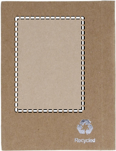 Recycled paper notebook with matching pen. Soft paper cover with pen holder. Casebound. 160 lined pages (80 sheets). Matching push button ball pen in recycled carton and biodegradable plastic. Blue ink. FSC®-certified | FSC MIX, P7.1, FSC-C213206