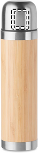 Double wall stainless steel insulated vacuum flask with bamboo outer cover. Capacity 400 ml. Bamboo is a natural product, there may be slight variations in colour and size per item, which can affect the final decoration outcome. Leak free.