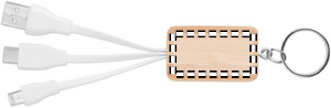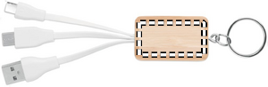 Bamboo cover key ring with charging cable with USB-A to Micro-B (2 in 1 pin) and Type C. Bamboo is a natural product, there may be slight variations in colour and size per item, which can affect the final decoration outcome.