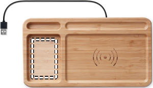 Desk storage desk box in bamboo with wireless charger. Including 80 cm USB cable charger. Output DC5V/1A (5W). Bamboo is a natural product, there may be slight variations in colour and size per item, which can affect the final decoration outcome.