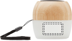 5.0 wireless speaker made from bamboo and PP material. Connect your smartphone or mobile device and start playing your favourite music. It has a 4-colour mood light and carry strap to take it with you. The 300 mAh rechargeable Li-POL battery has an approximate playing time of 2 hours when fully charged. Output data: 3W, 4 Ohm. Bamboo is a natural product, there may be slight variations in colour and size per item, which can affect the final decoration outcome.