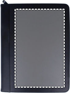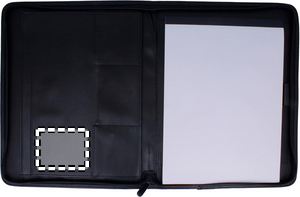 A4 conference folder with bonded leather cover. Zipped. 25 plain sheets notepad. 4 inner compartments. Pen holder.