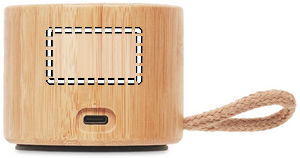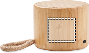 5.1 wireless speaker in ABS with bamboo casing, cotton on top and hanging loop. 1 Rechargeable Li-POL 300 mAh battery included. Includes an SD card port and an AUX/ USB cable. Output data: 3W, 3 Ohm and 5V. Playing time approx. 3h. Bamboo is a natural product, there may be slight variations in colour and size per item, which can affect the final decoration outcome.