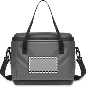 Cooler bag in 50C tarpaulin and top/bottom in rigid PEVA and bottle opener on the side. Including 1 front pocket and 1 inner mesh pocket. Isolation material: PE foam layer. Includes 2 handles and 1 adjustable and detachable strap. Capacity 16L.