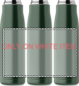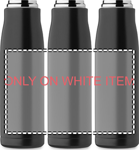 Double wall recycled stainless steel insulated vacuum bottle (90% recycled stainless steel and 10% stainless steel) with integrated cord grip on PP lid. Leak-free. Capacity: 500 ml.