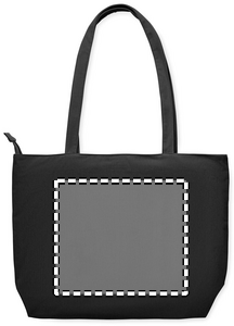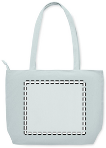 Large shopping/beach bag in polyester corduroy with top zipper closure, open front pocket and inner pocket. 220 gr/m².