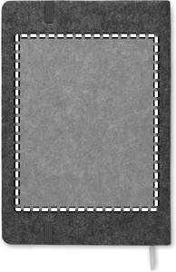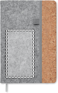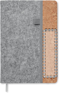 A5 notebook with RPET felt cover and cork. 160 recycled paper lined pages (80 sheets). Elasticated pen loop on front, matching elastic closure strap and ribbon page-marker. FSC MIX 100% | P7.1 | FSC-C213206