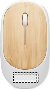 Wireless optical mouse in recycled ABS with bamboo top. 1 AA batteries not included. Bamboo is a natural product, there may be slight variations in colour and size per item, which can affect the final decoration outcome.