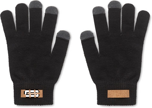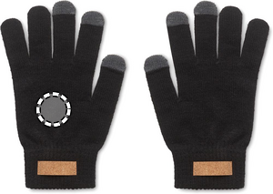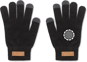 Tactile gloves for smartphone in RPET polyester with cork label for printing area. Cork is 100% natural material. Due to its structural nature and surface porosity the final print result per item may have deviations.
