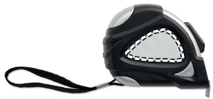 3m ABS measuring tape in silver case. Includes hand strap and shiny silver metal clip.