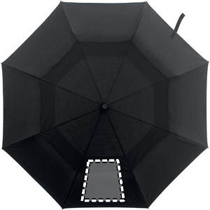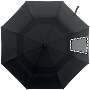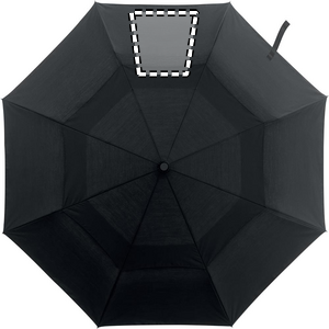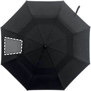 21 inch 2 fold auto open windproof umbrella in 190T polycotton (70% polyester and 30 % cotton) material with full aluminium shaft, tips and bamboo handle. Black fiberglass ribs. Includes matching pouch. Automatic closure.
