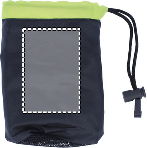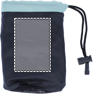 Sports towel presented in nylon pouch with adjustable closing. Towel: 70% polyester, 30% polyamide.
