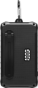 Solar power bank 8000 mAh with hand crank dynamo. Includes 1 LED light and 100 lumens. Type C input/output, 2 USB-A output. Output current DC 5V/2.1A.