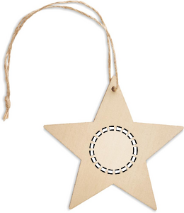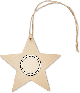 Wooden MDF star shaped decoration hanger with jute cord. MDF is made from natural materials, there may be slight variations in colour and size per item, which can affect the final decoration outcome.