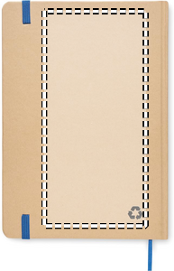 A5 notebook with hard recycled carton cover. Casebound. 160 squared recycled pages (80 sheets). Elastic closure strap, ribbon bookmark. FSC®-certified | FSC MIX CREDIT, P7.1, FSC-C213206