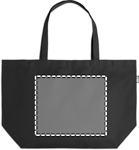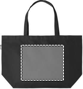Large shopping bag or beach bag made from 600D RPET. This bag is great for carrying your daily groceries or when you need to carry other items. With the long handles it can be held in your hands or hung over your shoulder. This recycled PET bag has a bottom gusset so you can carry more items than a regular shaped bag.