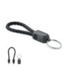 Key ring loop with charging cable 60W type-C to type-C in PU with zinc alloy braided detail.