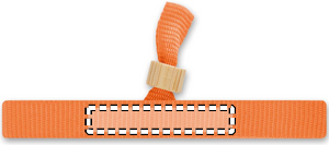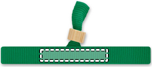 300D RPET polyester event wristband with bamboo ring closure. Wristband size 34 cm and 1,5 cm wide. Bamboo is a natural product, there may be slight variations in colour and size per item, which can affect the final decoration outcome.