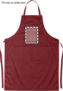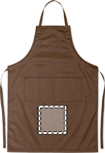 Adjustable kitchen apron with 2 front pockets in 10% cotton/90% polyester, 190gr/m². This product is OEKO-TEX® STANDARD 100 certified.